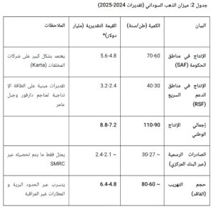 الإنتاج المعلن: سجلت “الشركة السودانية للموارد المعدنية” SMRC إنتاجاً قياسياً بلغ 64.4 طن في 2024، بعائدات حكومية بلغت 1.6 مليار دولار، مع توقعات بوصول الإنتاج إلى 70 طناً في 2025.2